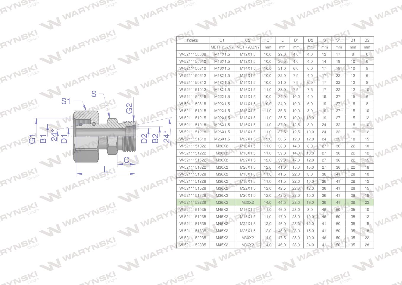 Hidraulični konektor, metrički AB (XKOR) A-M36x2 28L / B-M30x2 22L Waryński