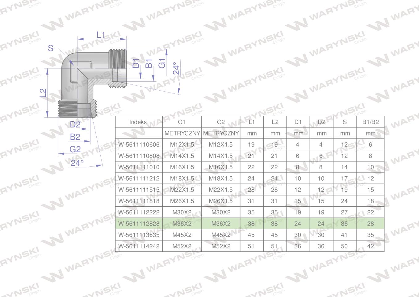 Hidraulični koljeni spoj, metrički AB M30x2 22L (XEVW) Waryński