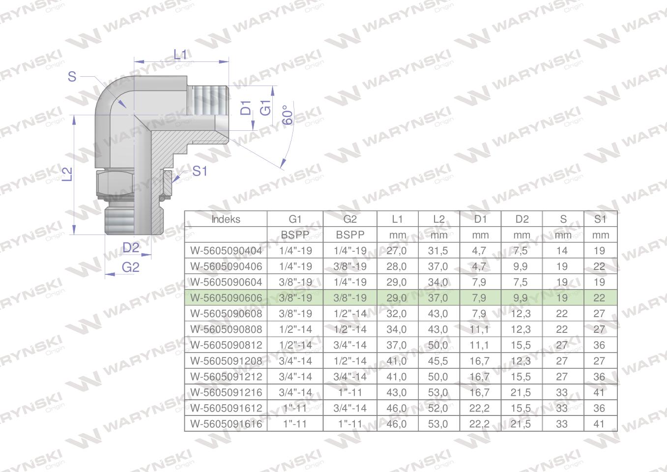 Podesivi hidraulički koljeni spoj, M16x1.5 10L x 1/4″BSP Waryński (prodaje se u jedinicama od 2 kom.)