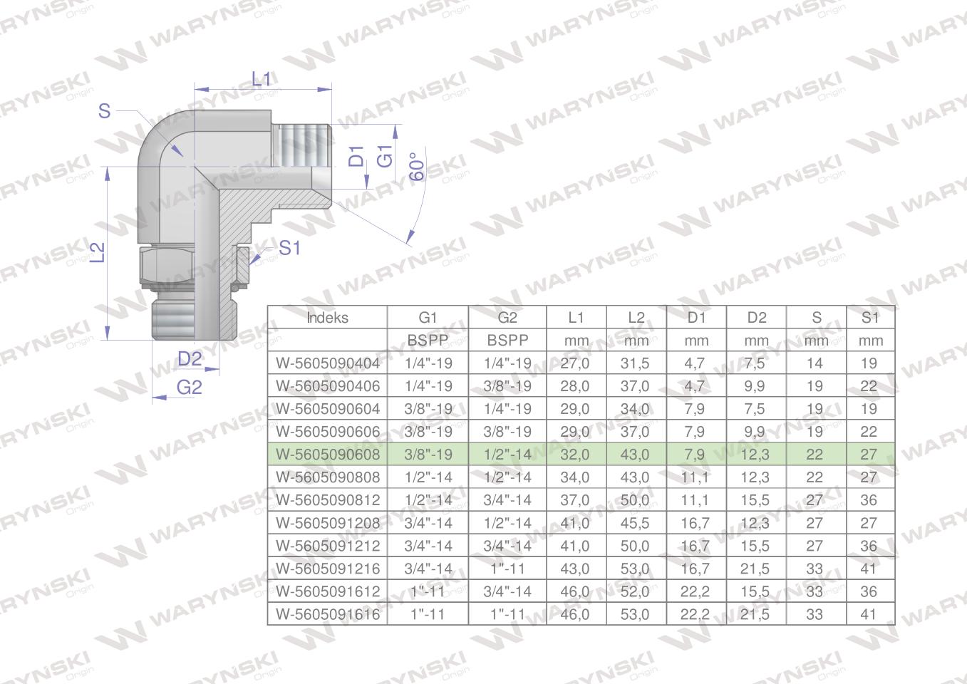 Podesivi hidraulički koljeni spoj, inčni BB 3/8″ x 1/2″ BSP Waryński