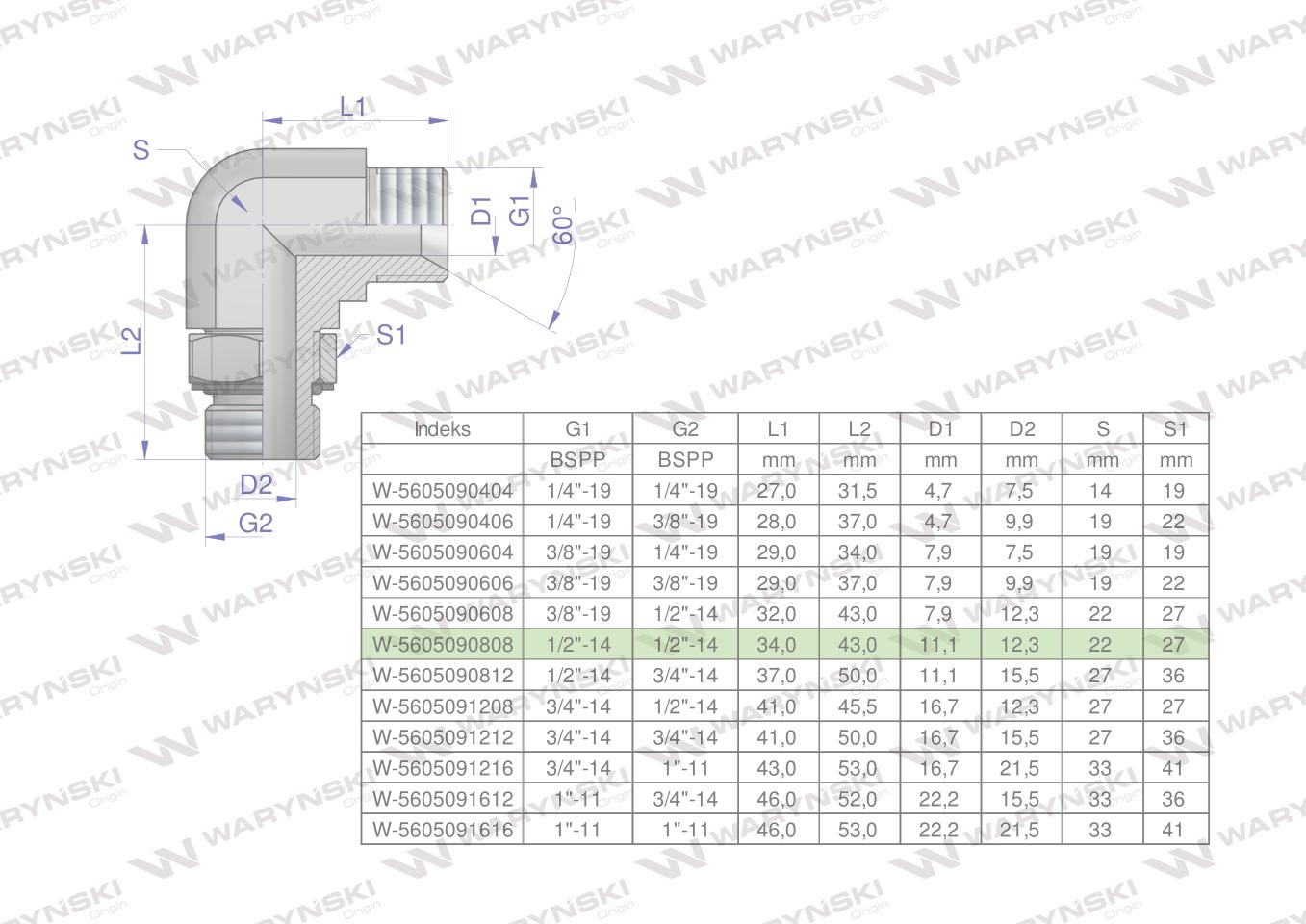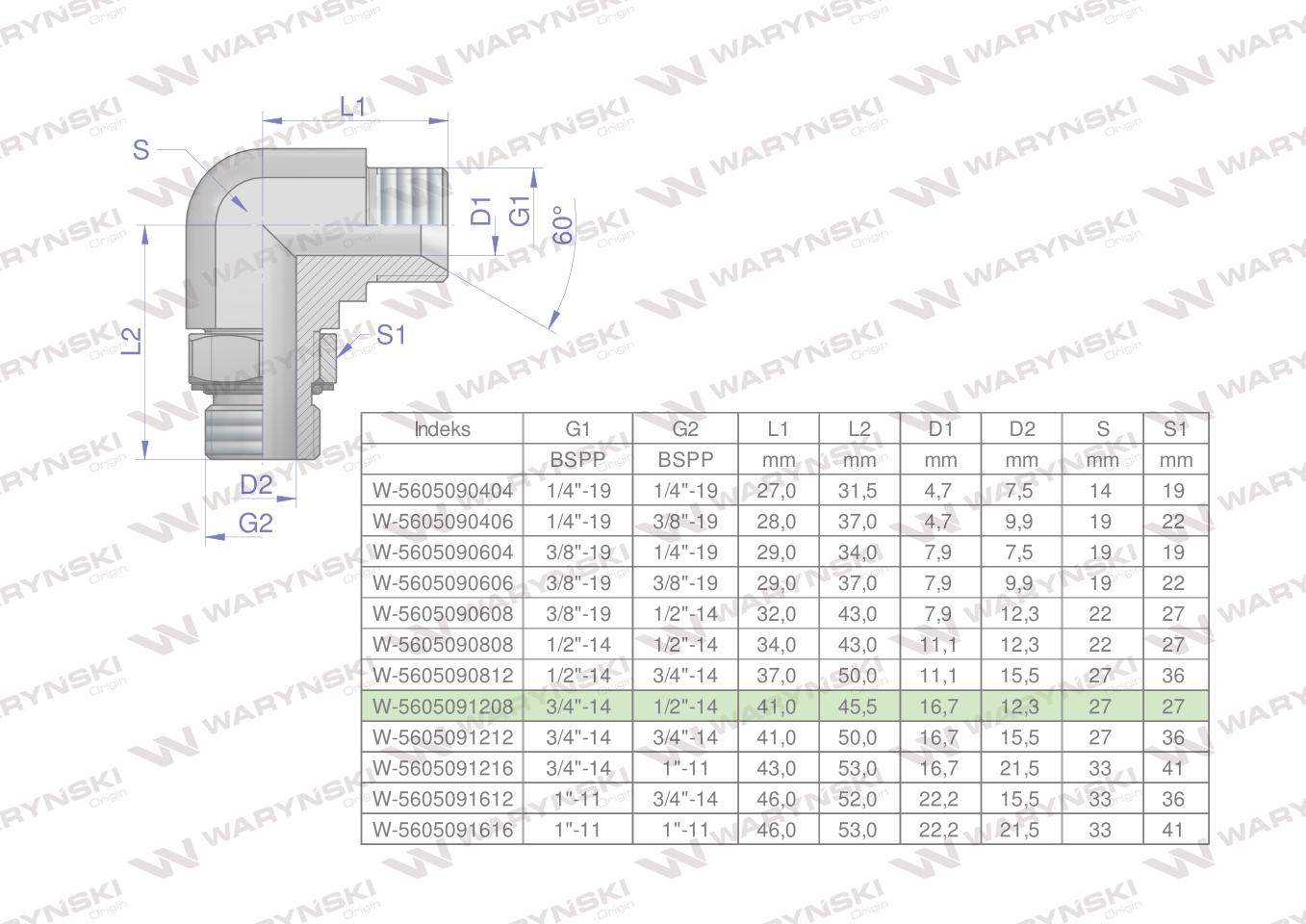 Podesivi hidraulički koljeni spoj, inčni BB 3/4″ x 1/2″ BSP Waryński