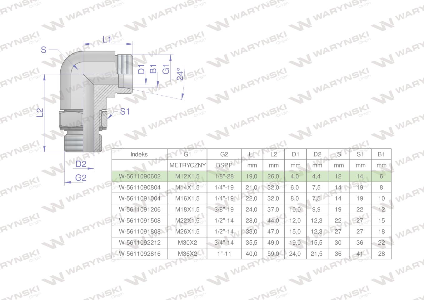 Podesivi hidraulički koljeni spoj, M12x1.5 06L x 1/8″ BSP Waryński
