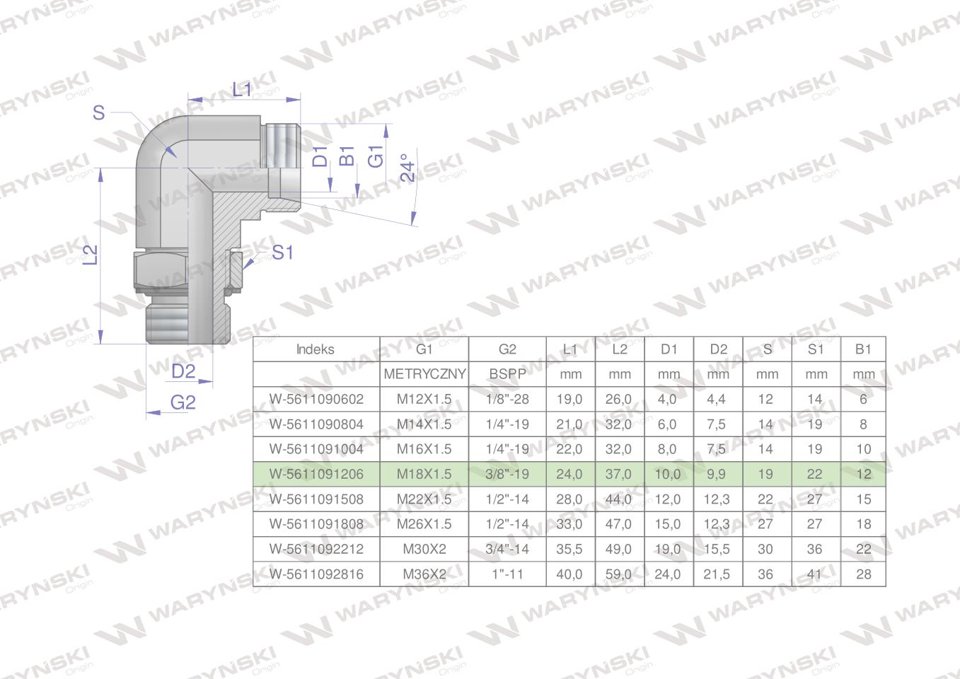 Podesivi hidraulički koljeni spoj, M18x1.5 12L x 3/8″BSP Waryński (prodaje se u jedinicama od 2 kom.)
