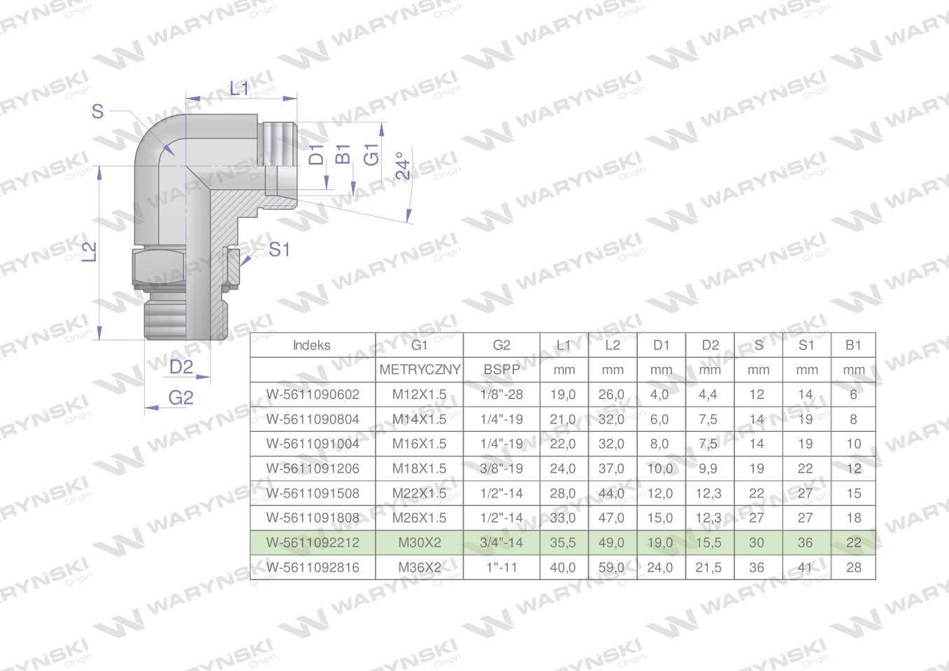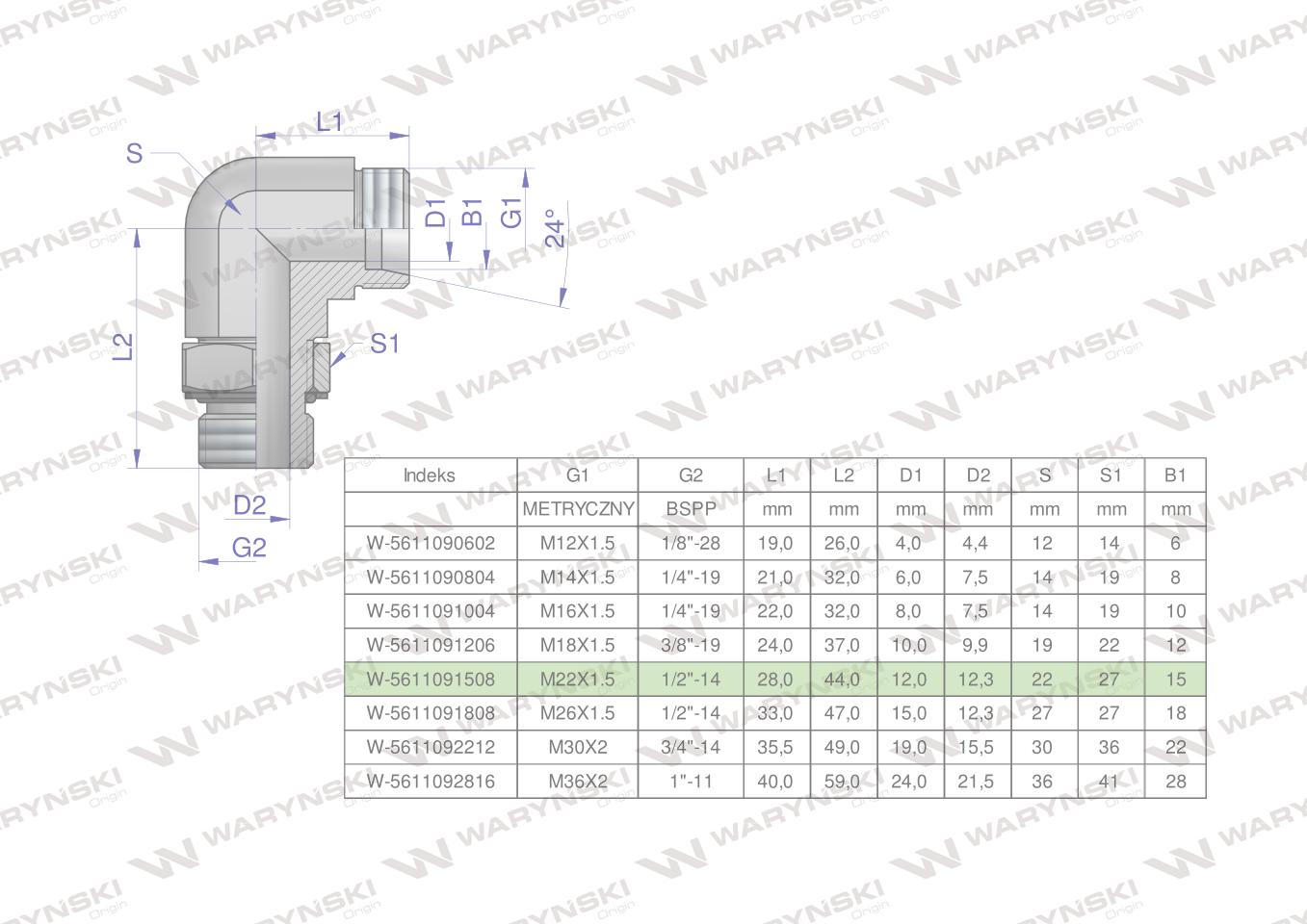 Podesivi hidraulički koljeni spoj, M22x1.5 15L x 1/2″ BSP Waryński (prodaje se u jedinicama od 2 kom.)