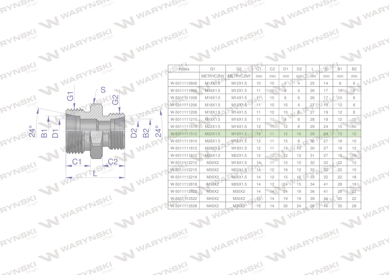 Hidraulični redukcijski spoj, metrički BB 22/18 M22x1.5 15L / M18x1.5 12L (XG) Waryński (prodaje se u jedinicama od 10 kom.)