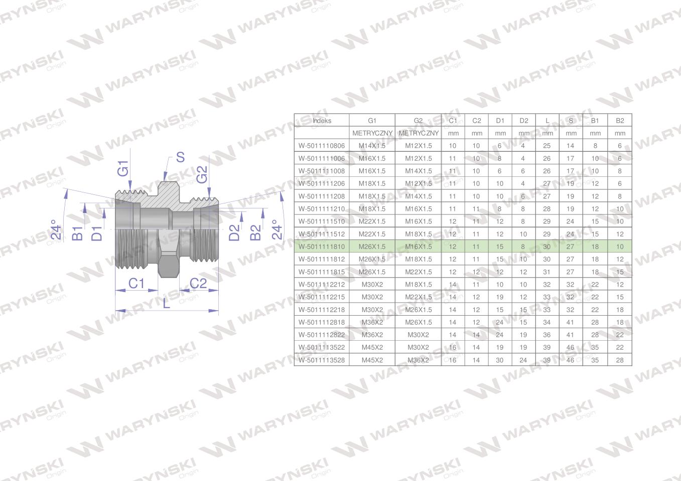 Metrički hidraulički redukcijski konektor BB M26x1.5 18L / M16x1.5 10L (XG) Waryński (prodaje se u jedinicama od 2 kom.)