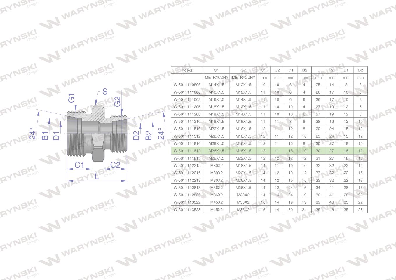 Metrički hidraulički redukcijski konektor BB M26x1.5 18L / M18x1.5 12L (XG) Waryński (prodaje se u jedinicama od 2 kom.)
