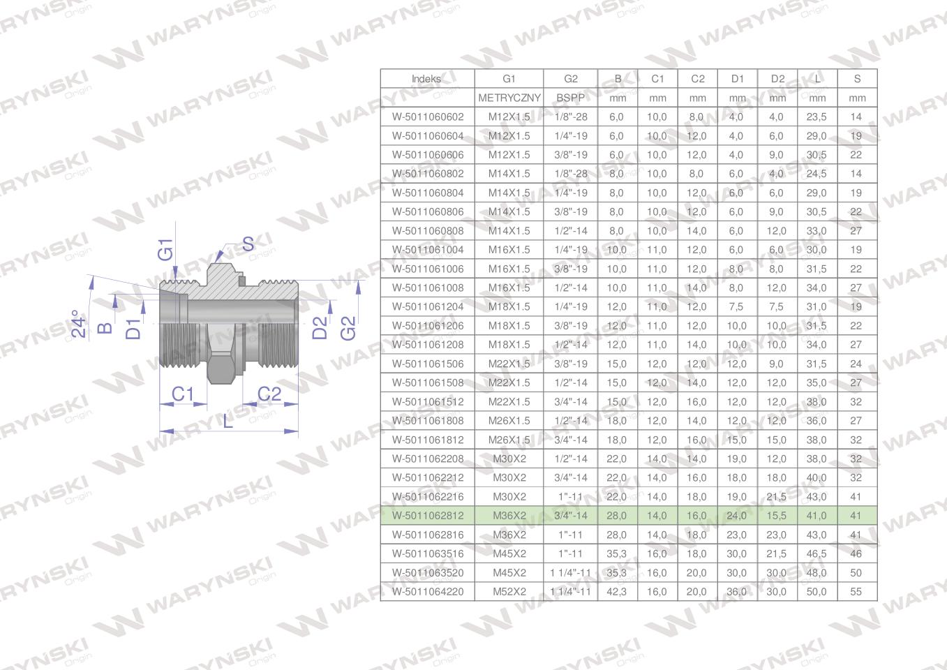 Hidraulički priključak (XGE) M36x2 28L2 28L x 3/4″ BSP ED Waryński (prodaje se u jedinicama od 2 kom.)
