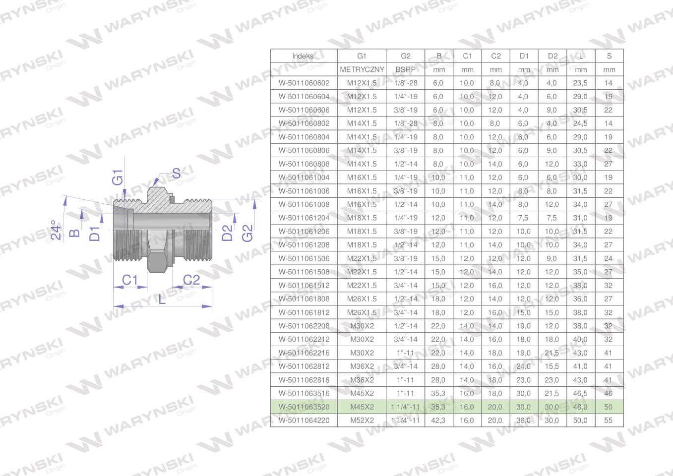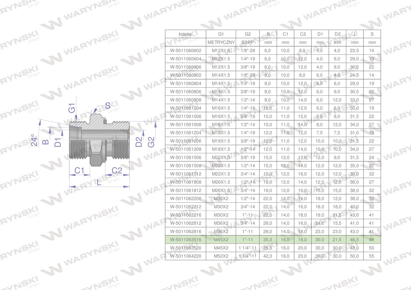 Hidraulički priključak (XGE) M36x2 28L2 28L x 1″ BSP ED Waryński (prodaje se u jedinicama od 2 kom.)