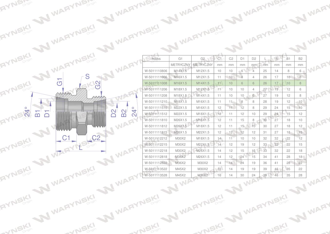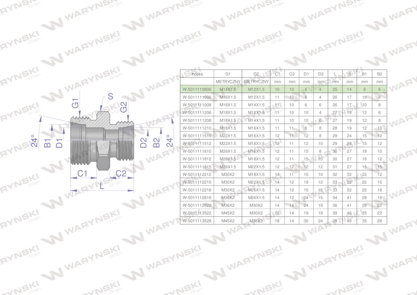 Hidraulični priključak, metrički AA M14x1,5 08L x M12x1,5 06L Waryński (prodaje se u jedinicama od 2 kom.)