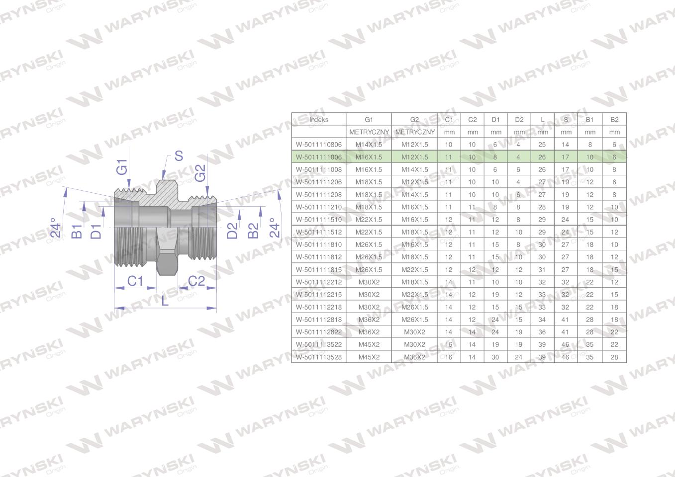 Hidraulični redukcijski konektor, metrički BB M16x1.5 10L / M12x1.5 06L (XG) Waryński (prodaje se u jedinicama od 5 kom.)