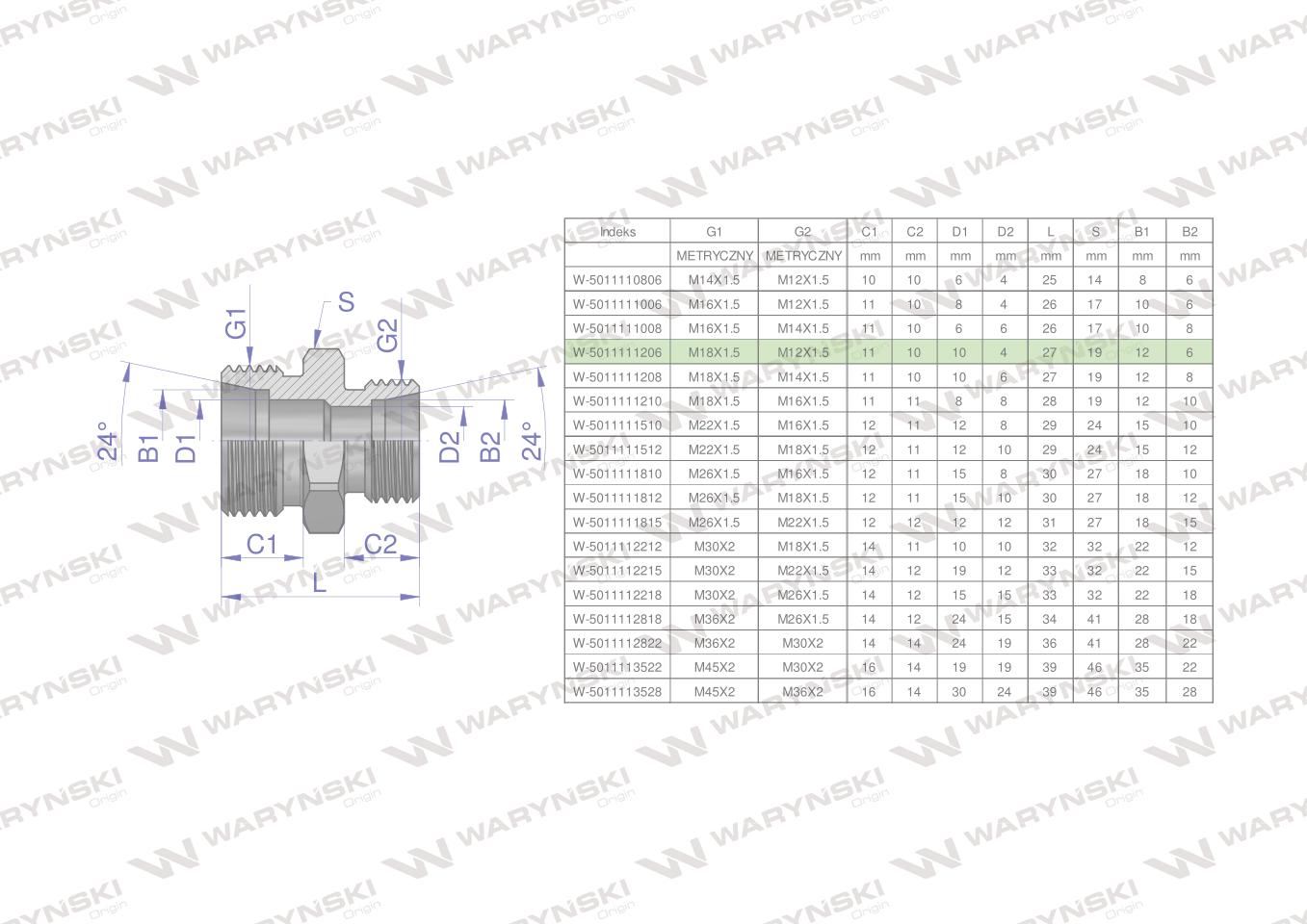 Hidraulični redukcijski konektor, metrički BB M18x1.5 12L / M12x1.5 06L (XG) Waryński (prodaje se u jedinicama od 5 kom.)
