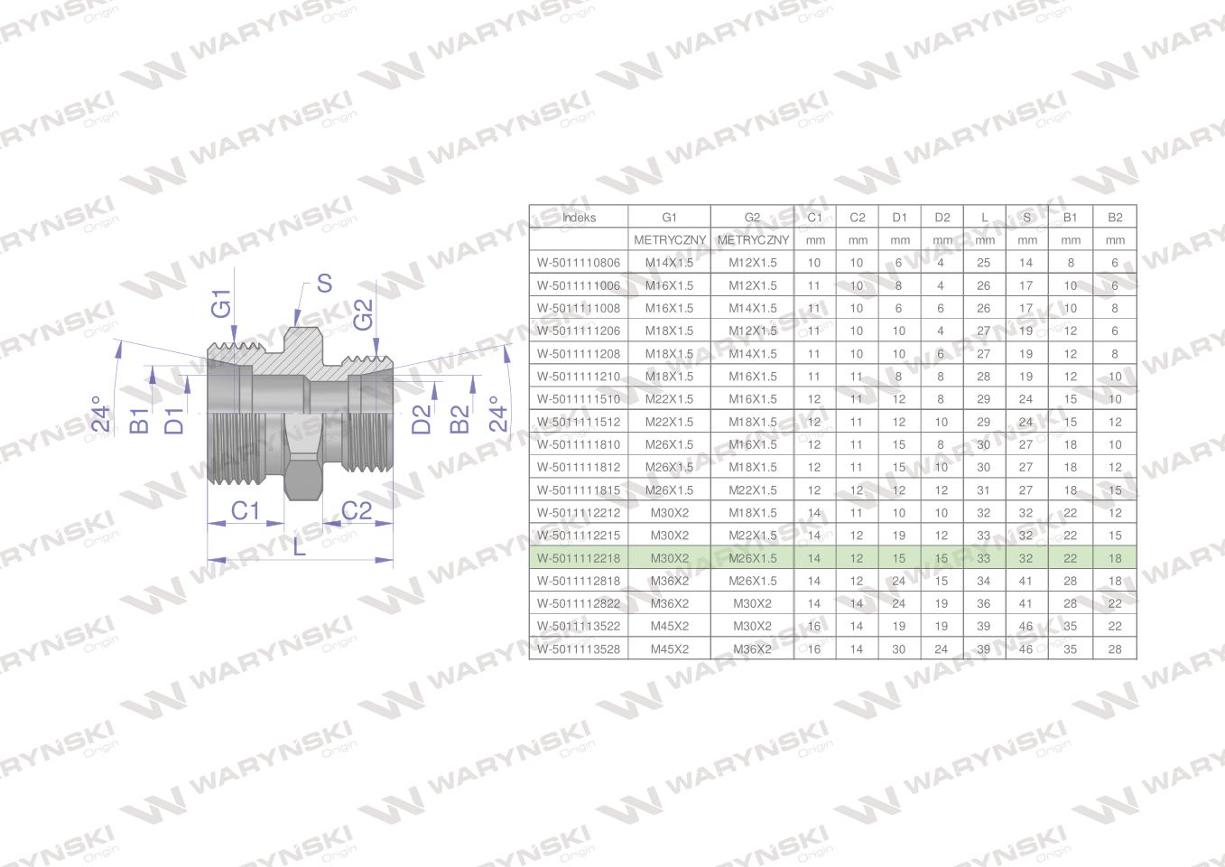 Hidraulični redukcijski konektor, metrički BB M30x2 22L / M26x1.5 18L (XG) Waryński
