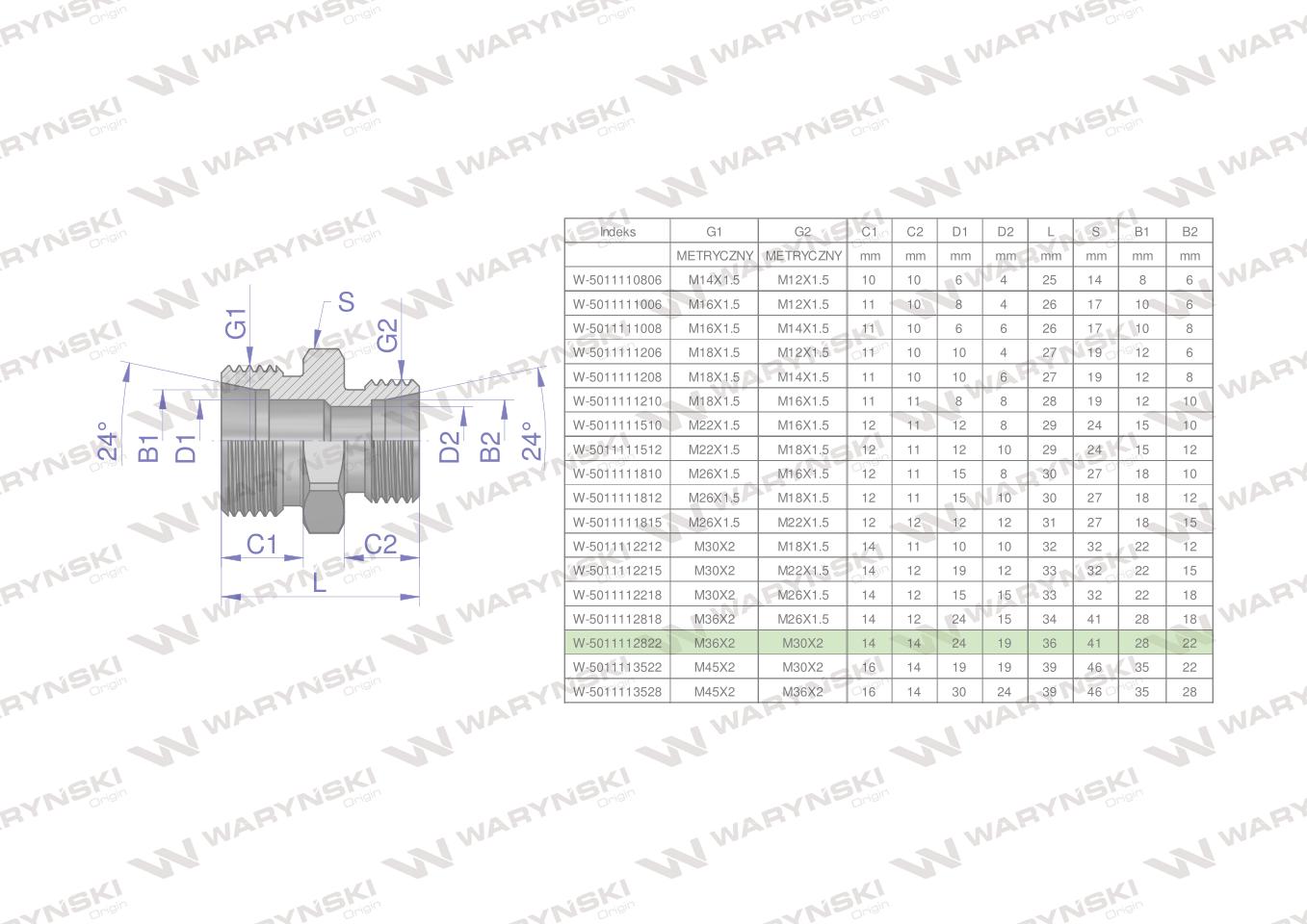 Hidraulični konektor, metrički AB (XKOR) A-M36x2 28L / B-M30x2 22L Waryński