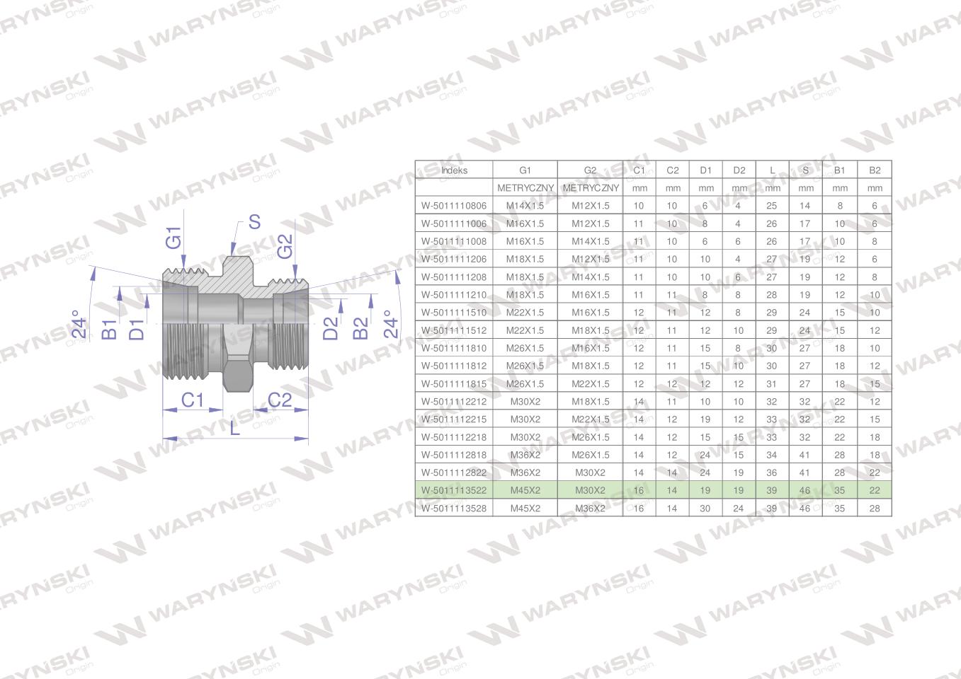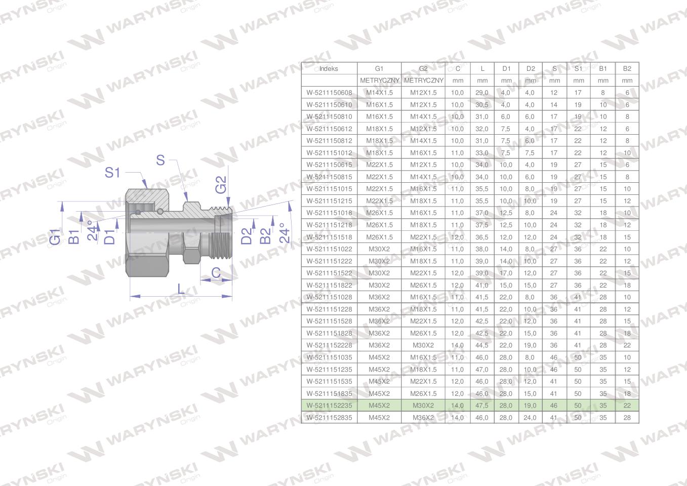 Hidraulični konektor, metrički AB (XKOR) A-M45x2 35L / B-M30x2 22L Waryński