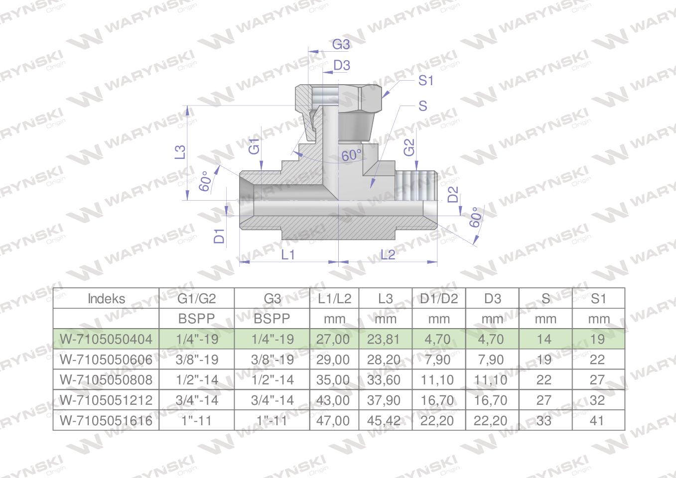 Simetrični hidraulični T-komad, veličina u inčima BAB 1/4″ BSP (XEVT) Waryński