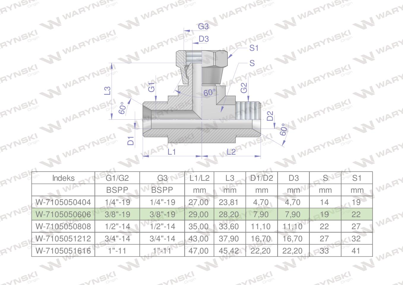 Simetrični hidraulični T-komad, veličina u inčima BAB 3/8″ BSP (XEVT) Waryński