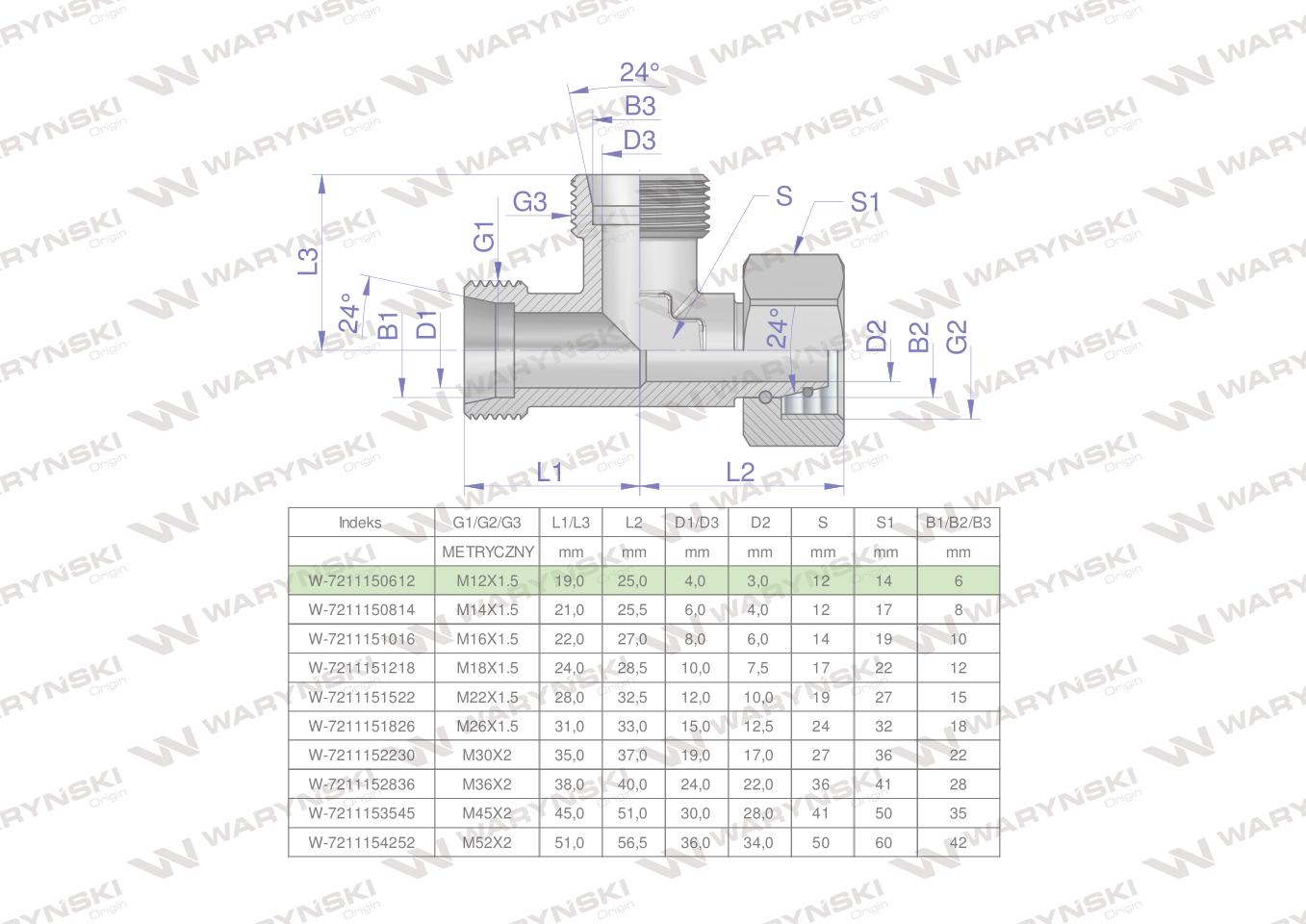 T-komad hidrauličkog konektora, asimetrični, metrički BBA M12x1.5 06L (XEVL) Waryński (prodaje se u jedinicama od 2 kom.)