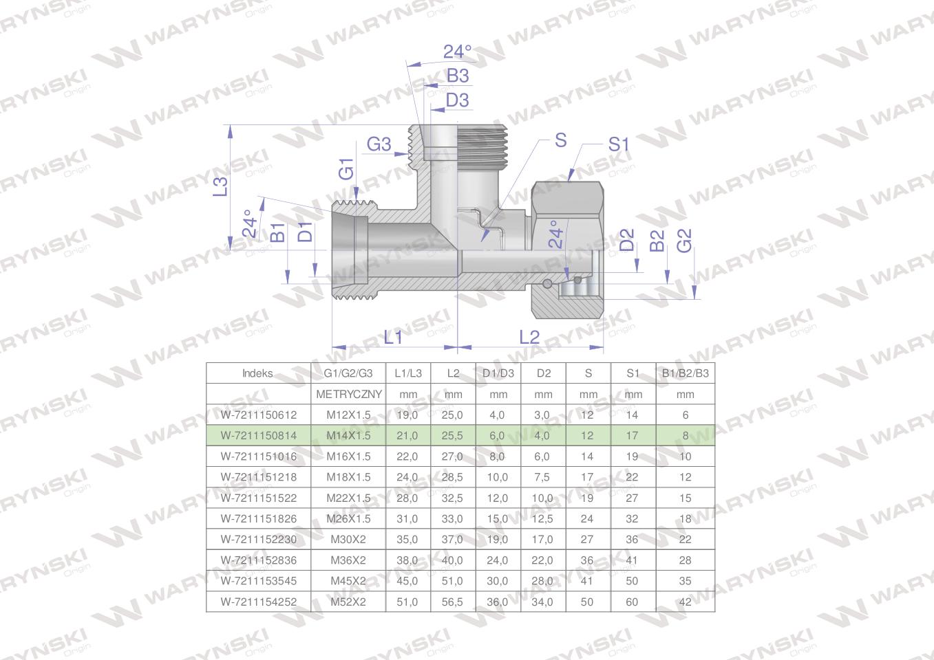 T-komad hidrauličkog konektora, asimetrični, metrički BBA M14x1.5 08L (XEVL) Waryński (prodaje se u jedinicama od 2 kom.)