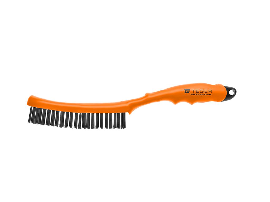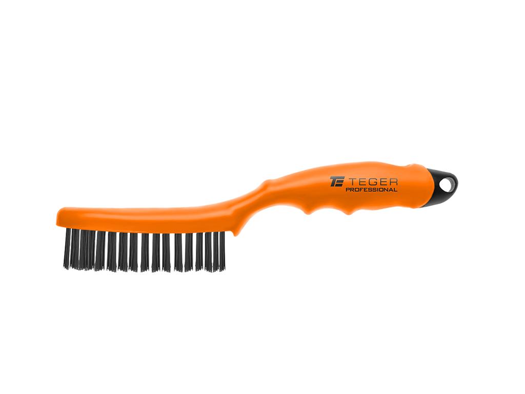 Četka za hrđu PROFESSIONAL, crna čelična četka / 4 reda, četka za uklanjanje hrđe s plastičnom ručkom,, Teger