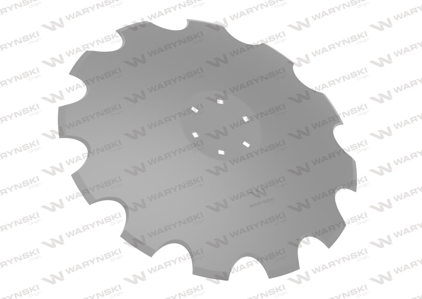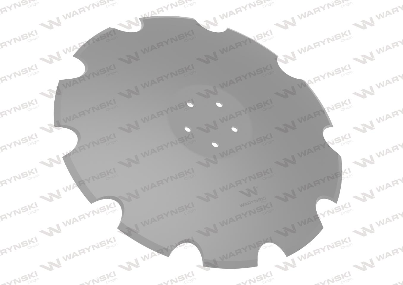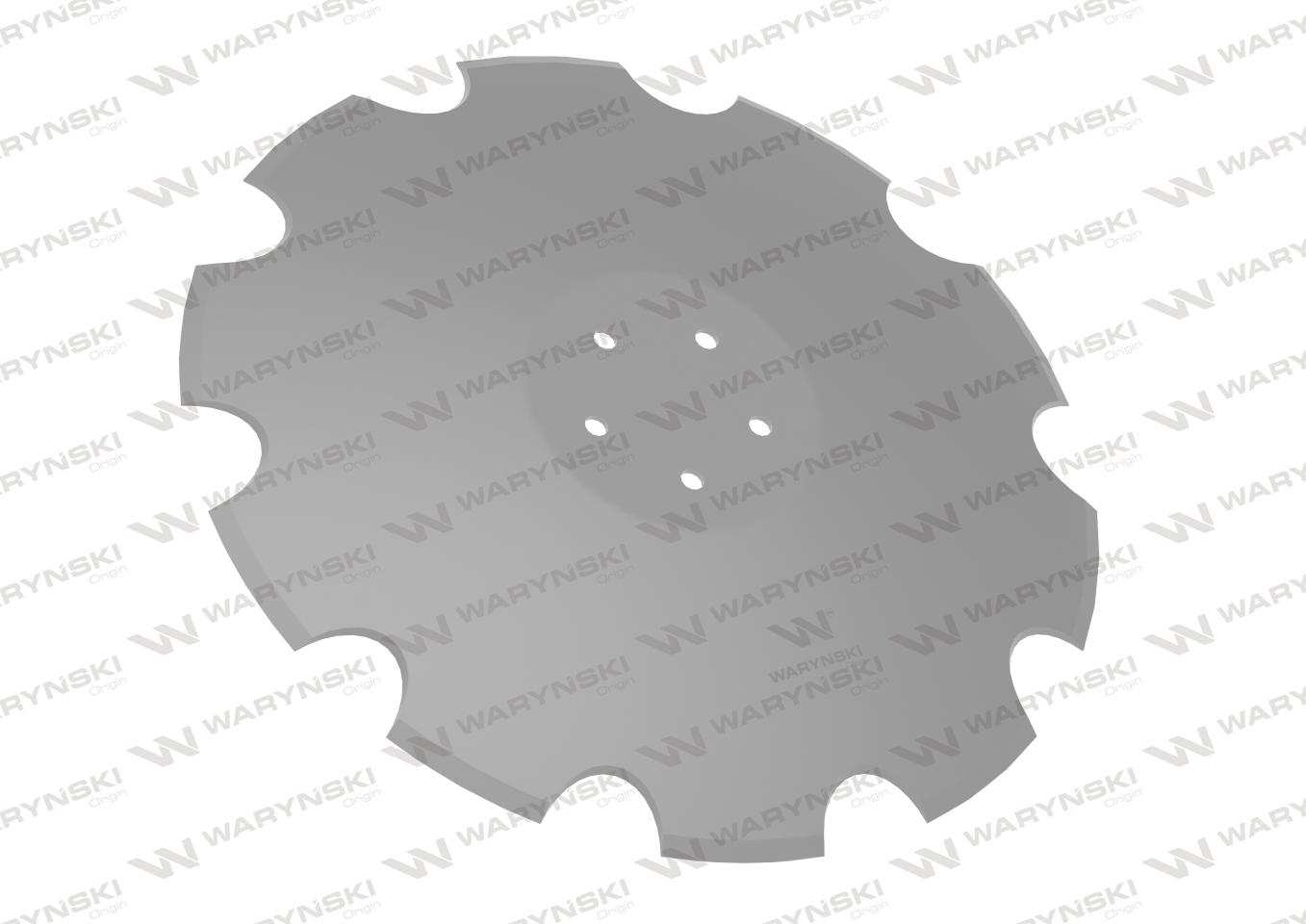 Talerz, uzębiony Z-10 fi 560 mocowanie 5/98 grubość 4,5 mm stal borowa prosta piasta, Waryński