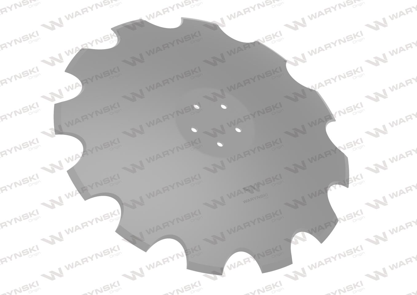 Talerz, uzębiony Z-12 fi 610 mocowanie 5/98 grubość 5 mm stal borowa prosta piasta, Waryński