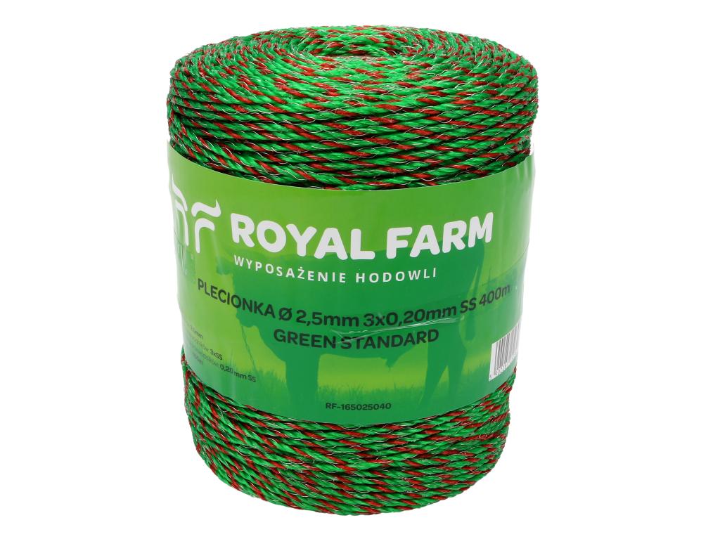Plecionka, do elektryzatora 2,5mm, 3×0,20mm SS zielono-pomarańczowa 400m, Royal Farm