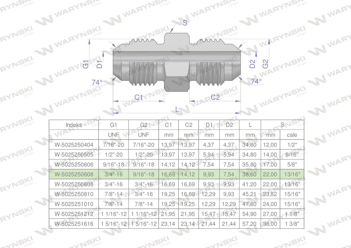 Hidraulični redukcijski konektor, inčni BB 9/16″ x 3/4″ UNF (JIC) Waryński (prodaje se u jedinicama od 2 kom.)