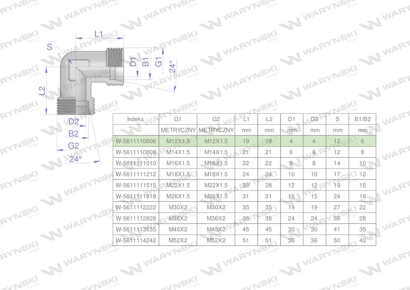 Hidraulični koljeni spoj, metrički AB M12x1.5 06L (XEVW) Waryński (prodaje se u jedinicama od 2 kom.)