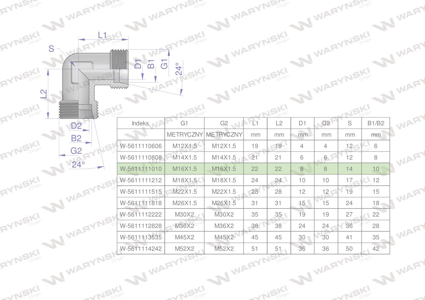 Hidraulični koljeni spoj, Metrički AB M16x1.5 10L (XEVW) Waryński (prodaje se u jedinicama od 5 kom.)
