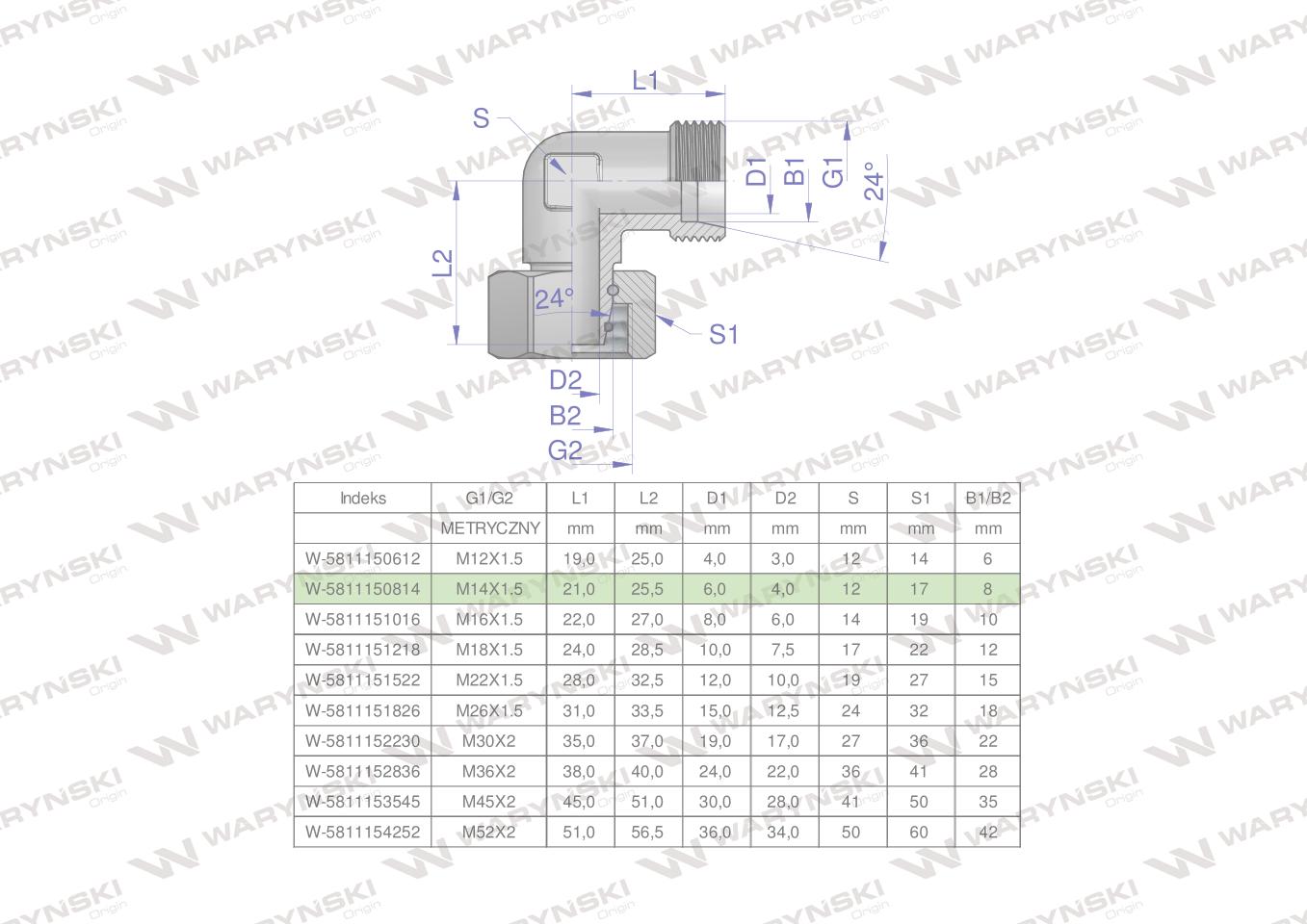 Hidraulični koljeni spoj, metrički AB M14x1.5 08L (XEVW) Waryński (prodaje se u jedinicama od 2 kom.)
