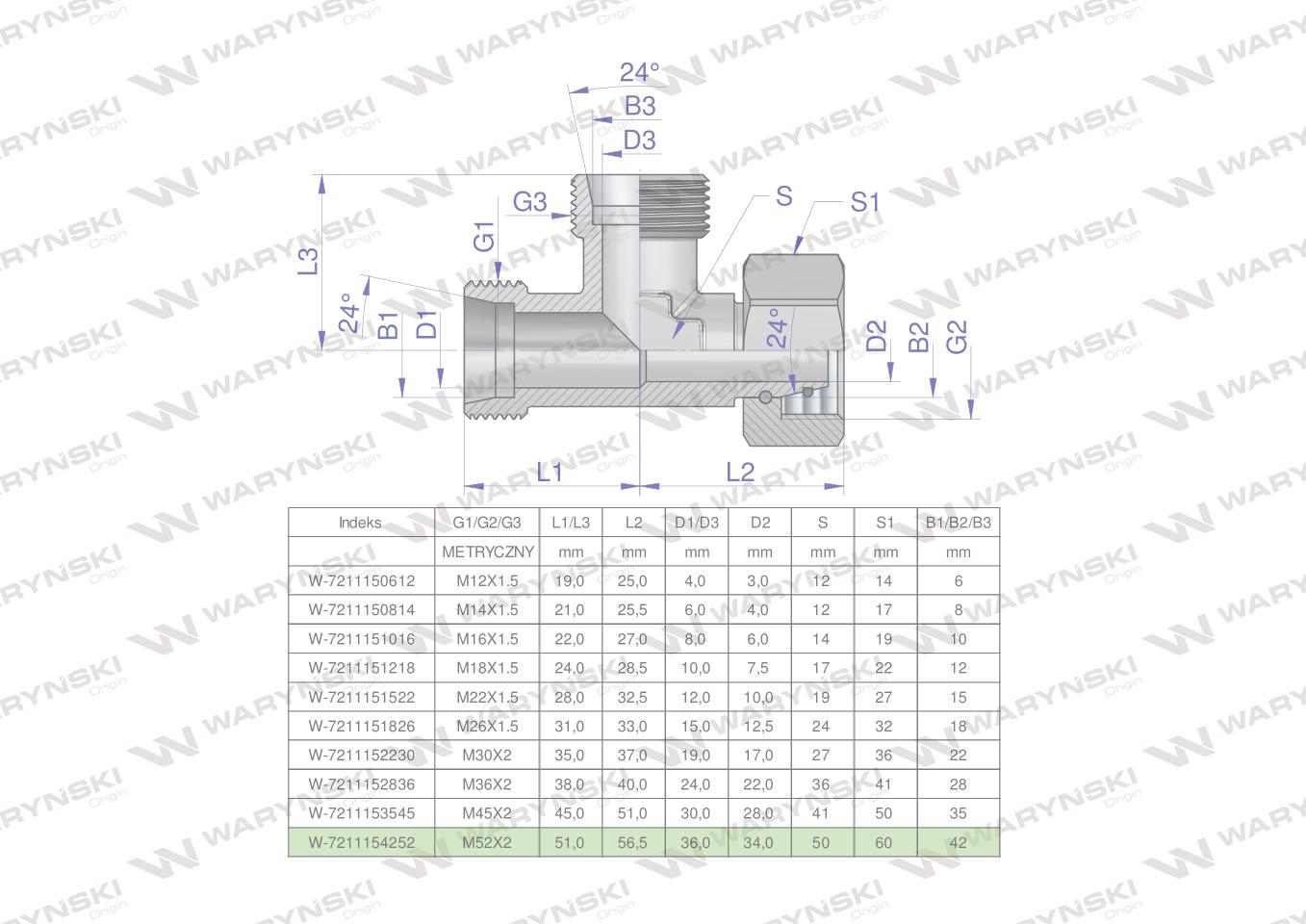 T-komad hidrauličkog konektora, asimetrični, metrički BBA M52x4 42L (XEVL) Waryński