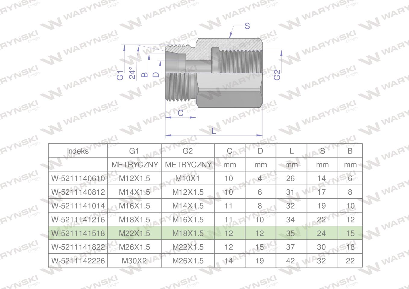 Hidraulički metrički priključak AB M14x1,5 08L GZ x M12x1,5 GW Waryński (prodaje se u jedinicama od 2 kom.)