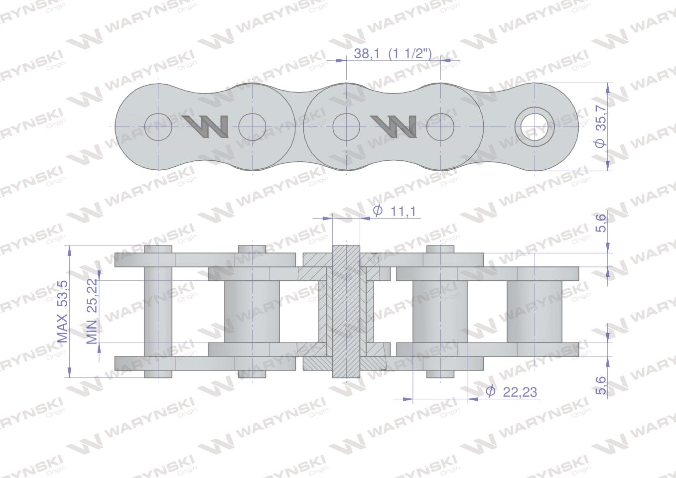 Industrijski valjkasti lanac s polu-karikom P24AH-1 ANSI A 120H (R1 1.1/2) Waryński (prodaje se u jedinicama od 2 kom.)